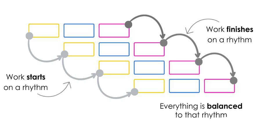 - That stabilizes the pace of work with one-process flow and limiting work in process